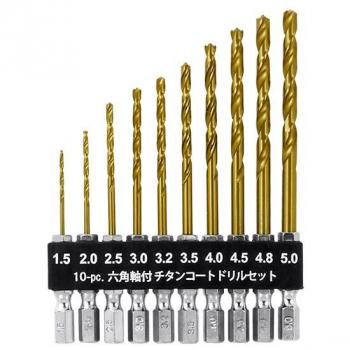 先端特殊加工仕様の、 六角軸付き10本組 ドリルセット