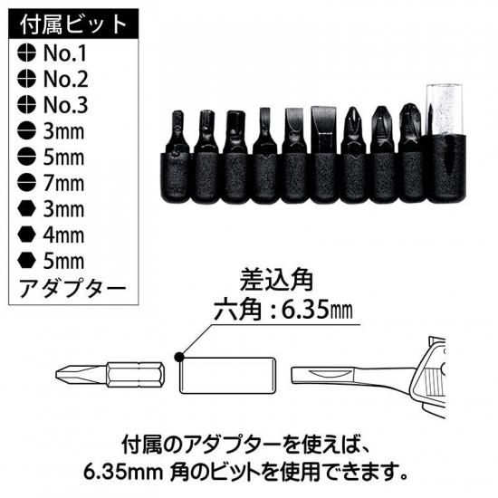 加工や修理に役立つ、豊富なドライバービットを備えた