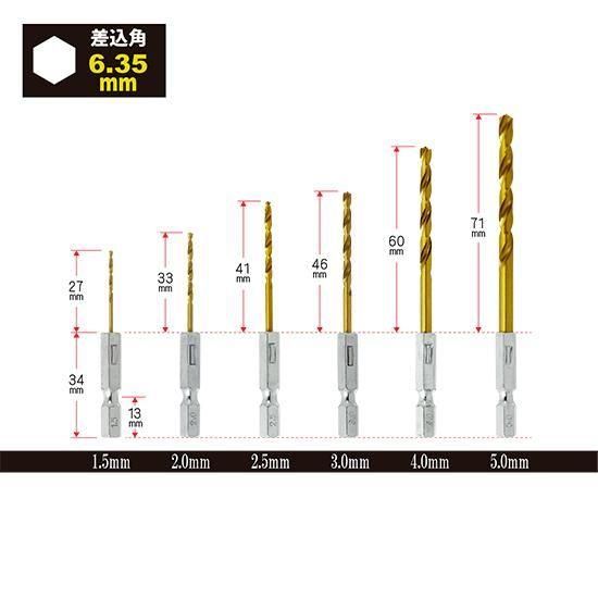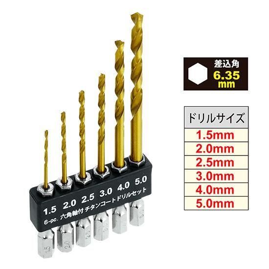 6PC.六角軸付 チタンコートドリル